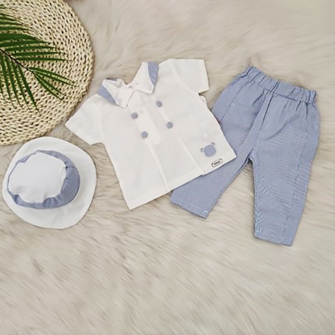 COMPLEU BLEO 3 PIESE DE IN 3-12 LUNI FORMAT DIN CAMASUTA DE IN CU CAPSE LA SPATE SI BUTONI IN FATA , PANALON SI PALARIUTA MODERNA .