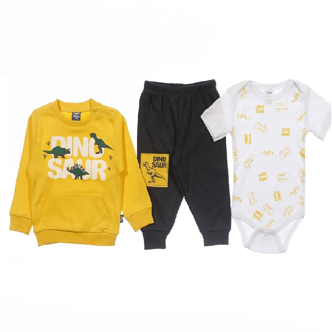 Iti doresti o tinuta comoda dar si vesela pentru bebelusul tau? Noi iti venim in ajutor cu acest compleu format din trei piese: body cu maneca scurta , bluzita si pantalon . Body-ul cu imprimeuri vesele, avand sistem de inchidere cu capse intre picioaruse.. Acest set este confectionat din bumbac, astfel ofera un plus de confort bebelusului tau.