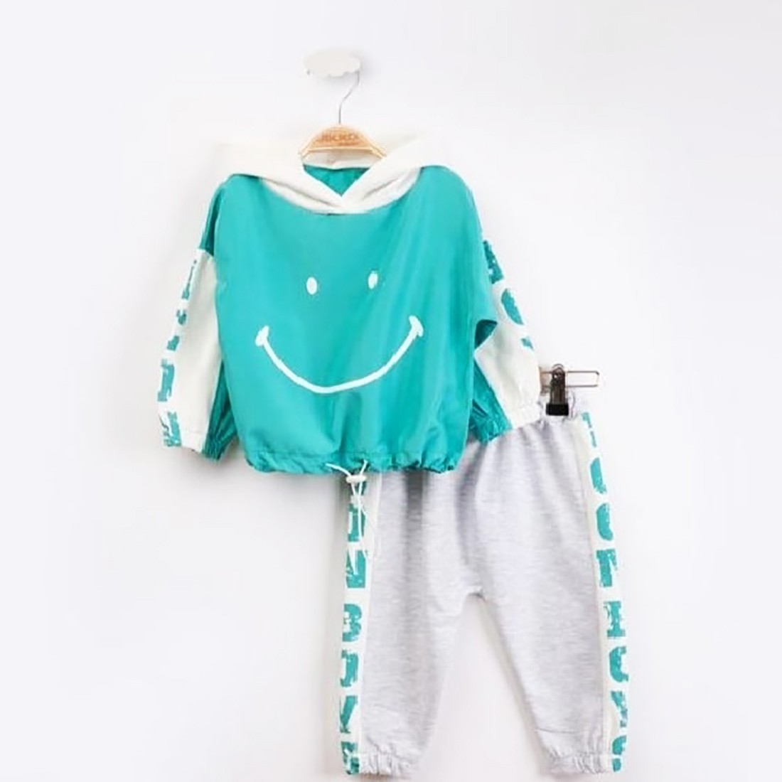 Compleu fas smile 3-12 luni format din hanorac cu gluga, model de fas si pantalonasi. Material 80% bumbac, 20% poliester.