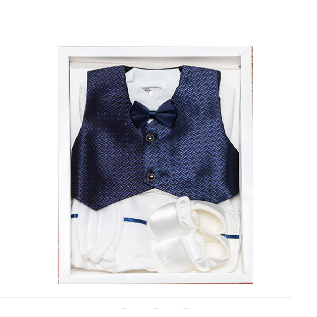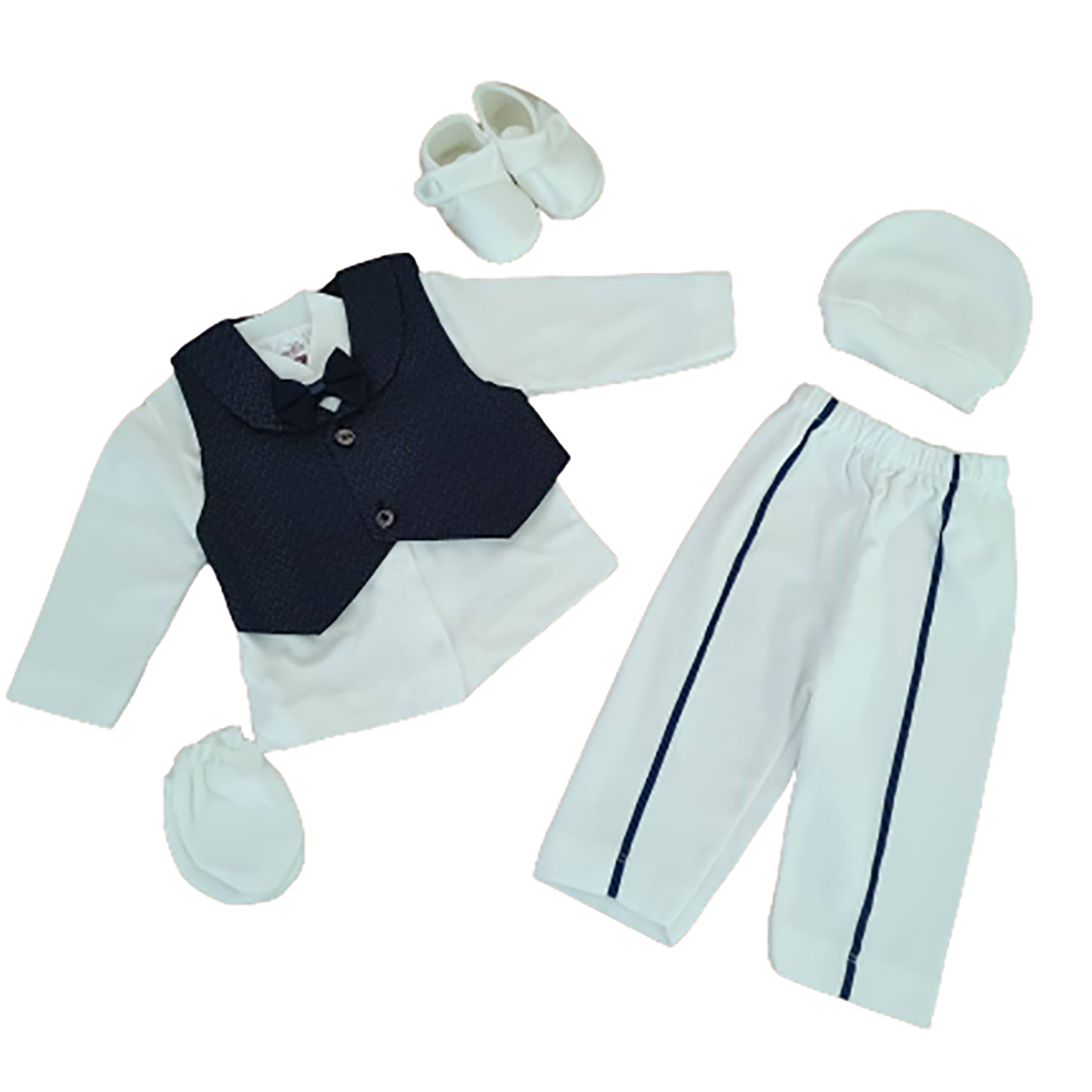 Set Costum botez baieti 6 piese, 100% Bumbac antialergic
