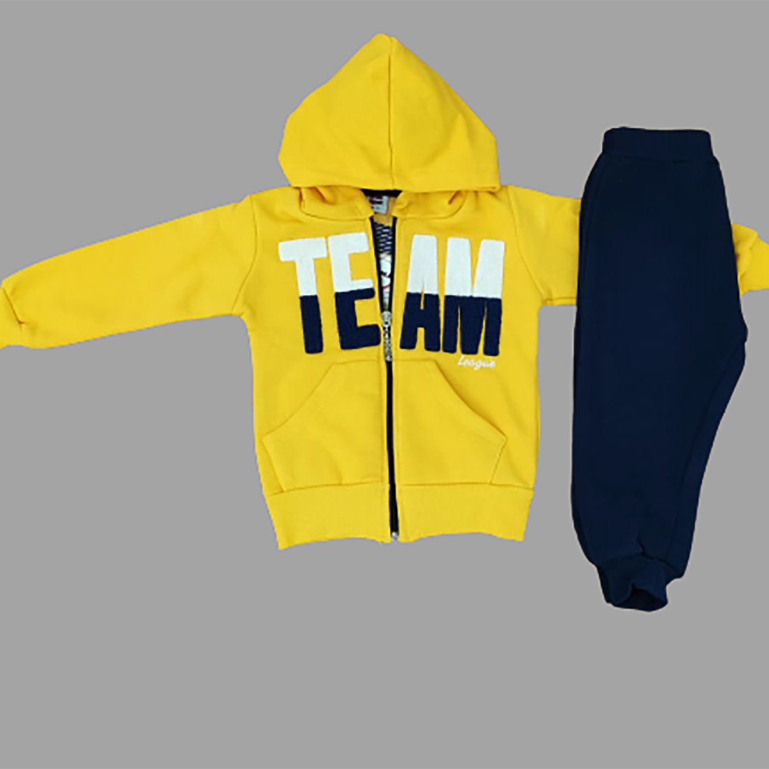 Trening copii din bumbac vatuit , potrivit pentru sezonul de toamna/ . Este format din doua piese: hanorac cu gluga + pantaloni lungi. Materialul din care este confectionat este fin la atingere, bumbacul fiind certificat OEKO-TEX 100.