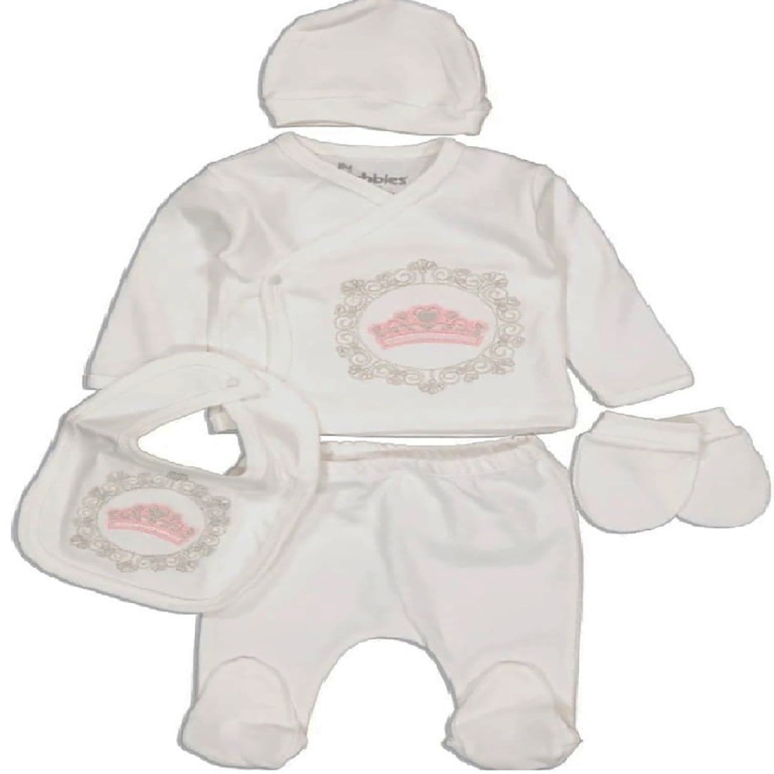 Set 5 piese nou nascut model regal 0-3 luni este un compleu confortabil care poate fi purtat oricand, este din 100% bumbac , sofisticat, pentru bebelusi eleganti, deosebiti, care vor sa fie diferiti de restul, gandit special de echipa BibiStore. Potrivit atunci cand vreti sa iesiti la o plimbare sau la joaca. Comod, calitativ, elegant, colorat. Cu imprimeuri dragalase, cu personaje sau animalutele preferate ale copilasului tau!